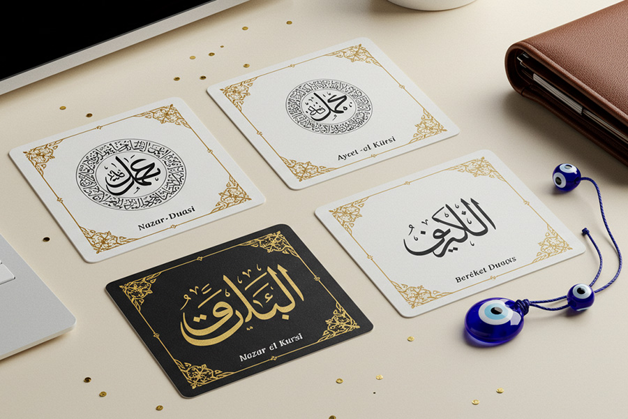 Nazarın olumsuz etkilerinden korunmak isteyenler için özel olarak hazırlanmış nazar duası içerikli dijital dua kartları, estetik nazar boncukları ve özgün İslami eserler. Hem evinizde hem iş yerinizde, huzur içinde olmak istediğiniz her ortamda güven ve huzur için tasarlandı.