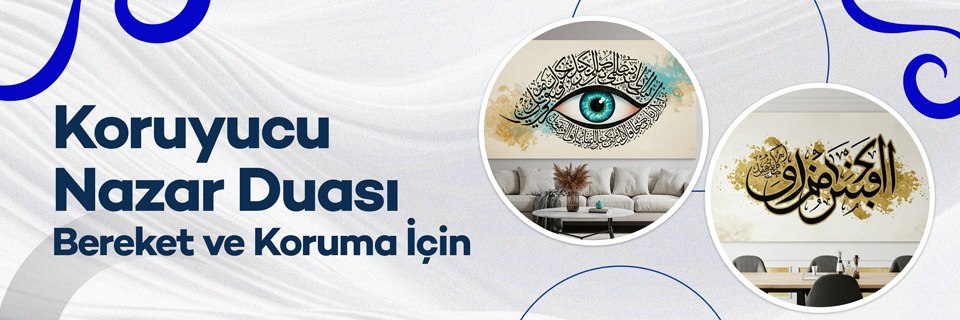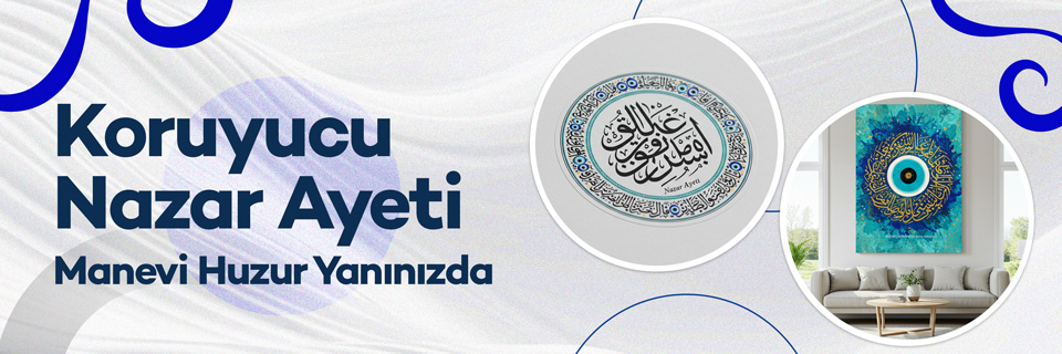 Nazar duası ve ayetlerinin yanı sıra, özel olarak seçilmiş İslami tasarımlar ve manevi eserlerle evinizi ya da iş yerinizi huzurla donatın. Dijital dua kartları, dekoratif tablolar ve anlamlı hediyelik ürünlerle korunmayı ve bereketi yanınızda taşıyın.