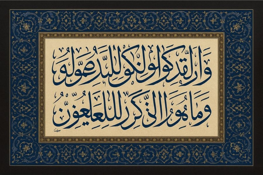Tablonun tasarımında kullanılan lacivert ve altın tonlarıyla süslenmiş Osmanlı motifleri, esere klasik bir ihtişam kazandırır. Hat sanatının zarif çizgileri, modern baskı teknikleriyle birleştirilerek uzun yıllar canlılığını koruyacak şekilde hazırlanmıştır. Ev, ofis ve ibadet alanlarında kullanılabilecek bu eser, dekorasyona hem estetik hem de ruhani bir boyut kazandırır.